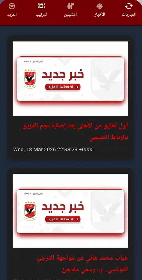 هو تطبيق غير رسمي مخصص لمتابعة أخبار النادي الأهلي المصري، يوفر آخر الأخبار والتحديثات عن النادي والفريق